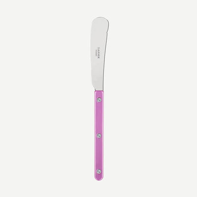 Get ready for a bright idea. Pearly combines the timelessness of the Bistrot collection, with a taste for colorful pairings complete with mother of pearl, pearlescent and opaline handles that bring the light to your table in a new way. This time, spoons, knives and forks come in twenty different colors, for sets you can design yourself from a wide range of colors and patterns. All you need, for a bright and bold table that’s deliciously customizable. Thanks to its wide, round blade, the Sabre butter knife can also be used for honey, jams and other spreadable delights.