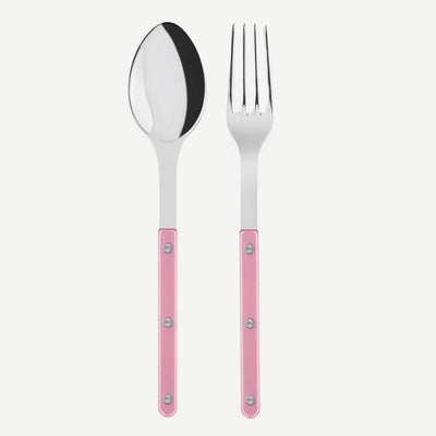 With the Bistrot collection, we were inspired by some of our favourite places: restaurants, terraces and cafés. When designing this cutlery we wanted to faithfully capture the atmosphere while adding a modern touch: the styling is simple, the rivets are visible, while the colours and materials stand out nicely. From red to blue, not forgetting the superb materials with horn or tortoise effects. Available with gloss or vintage finishes, we’re sure you’ll enjoy this collection, which is designed to be both traditional and contemporary at the same time. Comprised of a large fork for serving meat and a large spoon for accompaniments, this Sabre serving set is a vital day-to-day accessory. It is the perfect accompaniment for your household table cutlery collection.