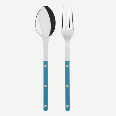 With the Bistrot collection, we were inspired by some of our favourite places: restaurants, terraces and cafés. When designing this cutlery we wanted to faithfully capture the atmosphere while adding a modern touch: the styling is simple, the rivets are visible, while the colours and materials stand out nicely. From red to blue, not forgetting the superb materials with horn or tortoise effects. Available with gloss or vintage finishes, we’re sure you’ll enjoy this collection, which is designed to be both traditional and contemporary at the same time. Comprised of a large fork for serving meat and a large spoon for accompaniments, this Sabre serving set is a vital day-to-day accessory. It is the perfect accompaniment for your household table cutlery collection.