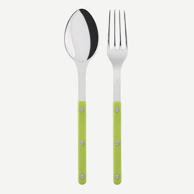 With the Bistrot collection, Sabre were inspired by some of their favourite places: restaurants, terraces and cafés. When designing this cutlery they wanted to faithfully capture the atmosphere while adding a modern touch: the styling is simple, the rivets are visible, while the colours and materials stand out nicely. From red to blue, not forgetting the superb materials with horn or tortoise effects. Available with gloss or vintage finishes, we’re sure you’ll enjoy this collection, which is designed to be both traditional and contemporary at the same time. Comprised of a large fork for serving meat and a large spoon for accompaniments, this Sabre serving set is a vital day-to-day accessory. It is the perfect accompaniment for your household table cutlery collection.