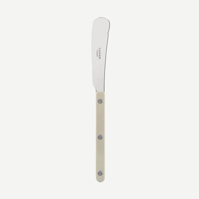 With the Bistrot collection, Sabre were inspired by some of their favourite places: restaurants, terraces and cafés. When designing this cutlery they wanted to faithfully capture the atmosphere while adding a modern touch: the styling is simple, the rivets are visible, while the colours and materials stand out nicely. From red to blue, not forgetting the superb materials with horn or tortoise effects. Available with gloss or vintage finishes, we’re sure you’ll enjoy this collection, which is designed to be both traditional and contemporary at the same time. Thanks to its wide, round blade, the Sabre butter knife can also be used for honey, jams and other spreadable delights.