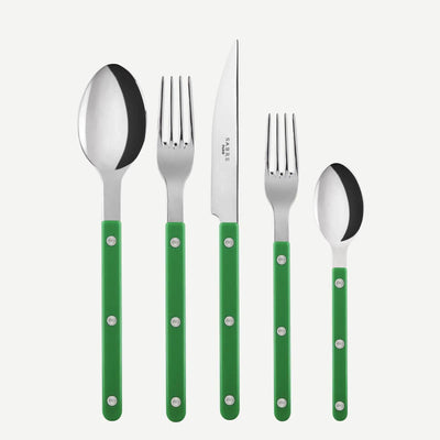 With the Bistrot collection, Sabre were inspired by some of their favourite places: restaurants, terraces and cafés. When designing this cutlery they wanted to faithfully capture the atmosphere while adding a modern touch: the styling is simple, the rivets are visible, while the colours and materials stand out nicely. From red to blue, not forgetting the superb materials with horn or tortoise effects. Available with gloss or vintage finishes, we’re sure you’ll enjoy this collection, which is designed to be both traditional and contemporary at the same time. This 5-piece Sabre set includes a soup spoon, a dinner fork, a dinner knife, a teaspoon and a salad fork, simply perfect for enjoying a dessert or starter. This 5-piece set offers the perfect combination for your daily meals.