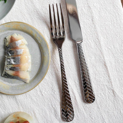 Inspired by woven straw mats, these cutlery items will delight you thanks to the efficiency of stainless steel combined with a distinctive pattern.