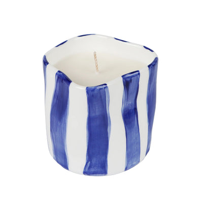 Irregular shaped handmade candle in an Aegean blue stripes design. Each and every candle is squashed with ♡ and painted by hand in Greece. No two will ever be the same.