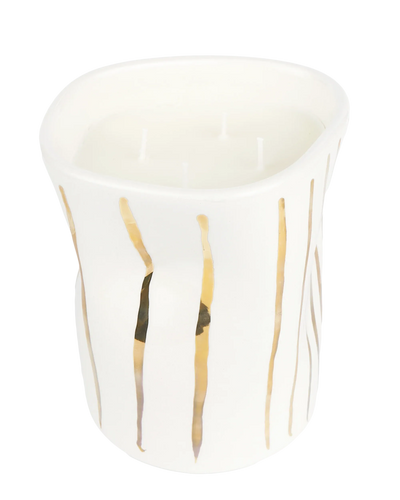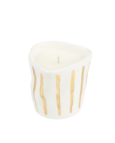 This signature irregular candle is squashed with love and hand-painted in a pure gold stripes design, in Greece. More than just a candle, it's a unique way to infuse contemporary style into any space.
