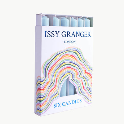 Issy's colourful chic Dinner Candles are hand drawn using traditional techniques on the South West coast of England. This technique gives the candles a unique mottled appearance. The candles are hand packaged in an Issy Granger candles box and come in a set of six.