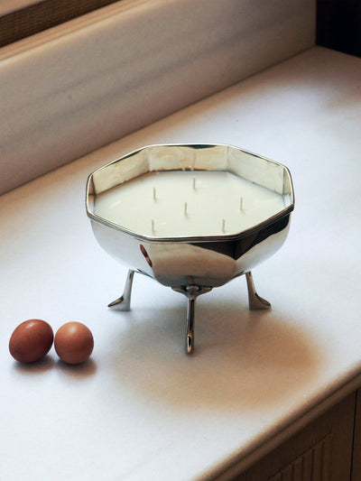 Four slender legs gracefully elevate the piece, lending visual lightness and a sculptural touch that makes it much more than a candle: it is a style statement.