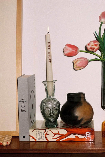 For all the indoor aficionados out there: complete your tablescapes with our Gratitude Candles. They come in a set of two, are made of unscented natural wax and each conical candle was hand-painted in Bari by skilled Italian artisans.