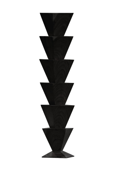 The Inverted Torre Sculpture, part of Daniel Orozco Estudio's 2024 collection, is a bold statement of sustainable design and artisanal craftsmanship. Handcrafted from solid cedar wood sourced from the Yucatán, this towering piece features a striking composition of inverted and truncated triangular shapes, finished with a charred effect that highlights its raw elegance. Designed for both indoor and outdoor use, it reflects the studio's commitment to blending timeless aesthetics with environmentally conscious materials. Dimensions: 35L x 35W x 196H cm.