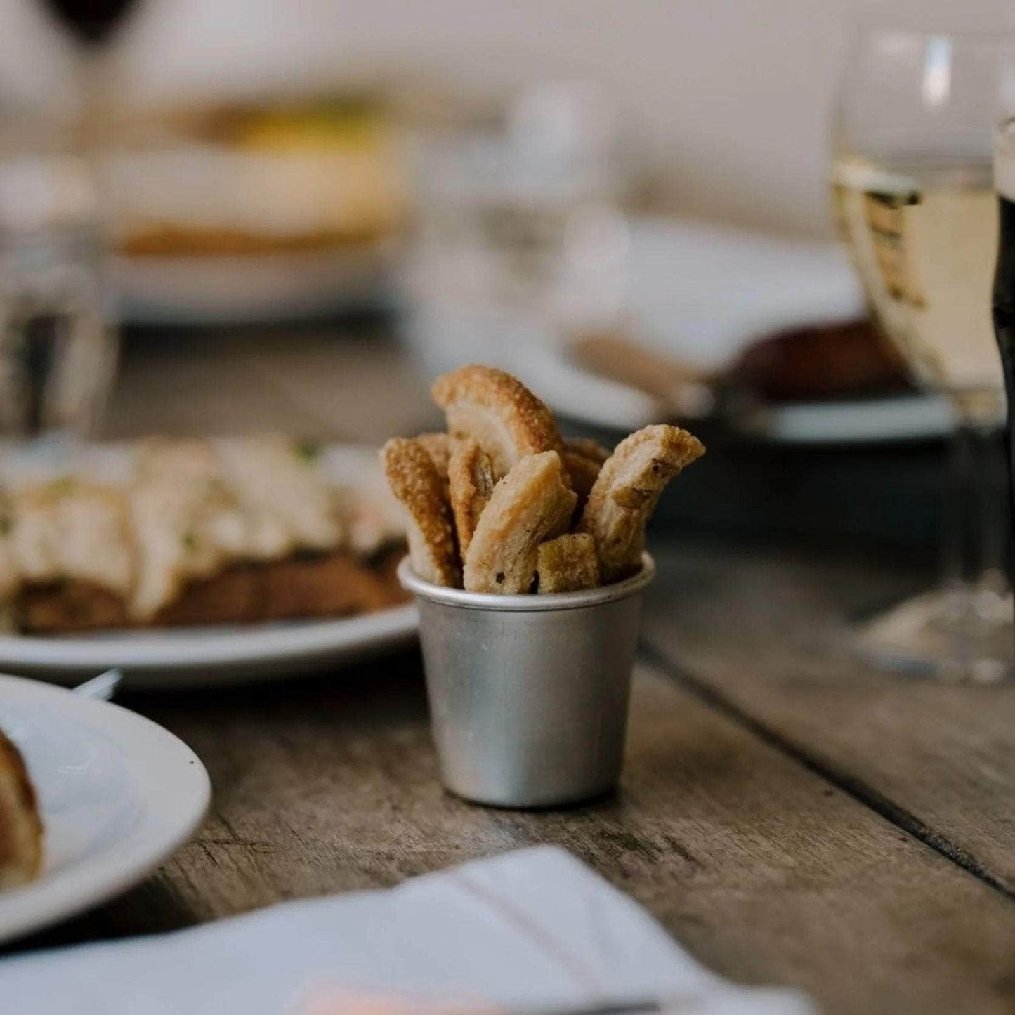 The Pelican use these vintage steel tins to serve everything from olives and nuts, to chips and crisps. A simple, elegant addition to any home dining setup.