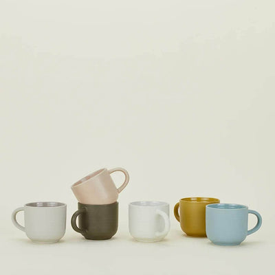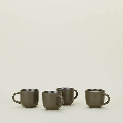 Coming in a set of 4, these mugs are pragmatic and elegant; that HNY sweet spot. Sitting comfortably in the hand and makes a just-right morning companion, these mugs have a  soft rippling throughout and a slight foot for a hand thrown feeling (without the hand thrown price tag)