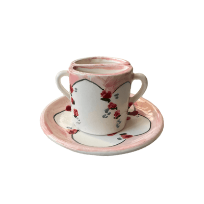 At first glance, it seems like a single cup, but in reality, it's two cups cleverly disguised as one. With hand-painted artistry and a saucer measuring 12 cm, these cups are perfect for intimate coffee moments.