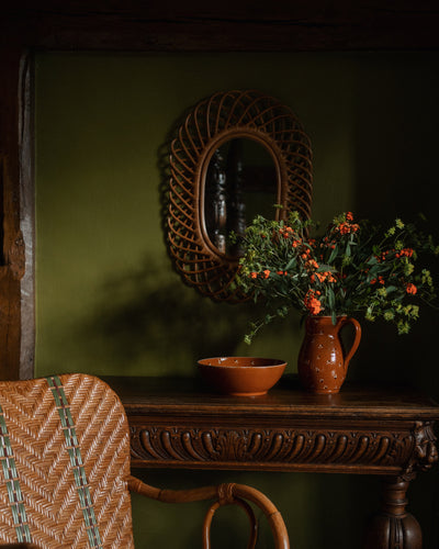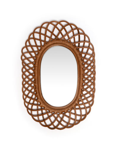 Such a charming oval rattan mirror, inspired by an antique Louise found in France, this piece is handmade from woven rattan.
