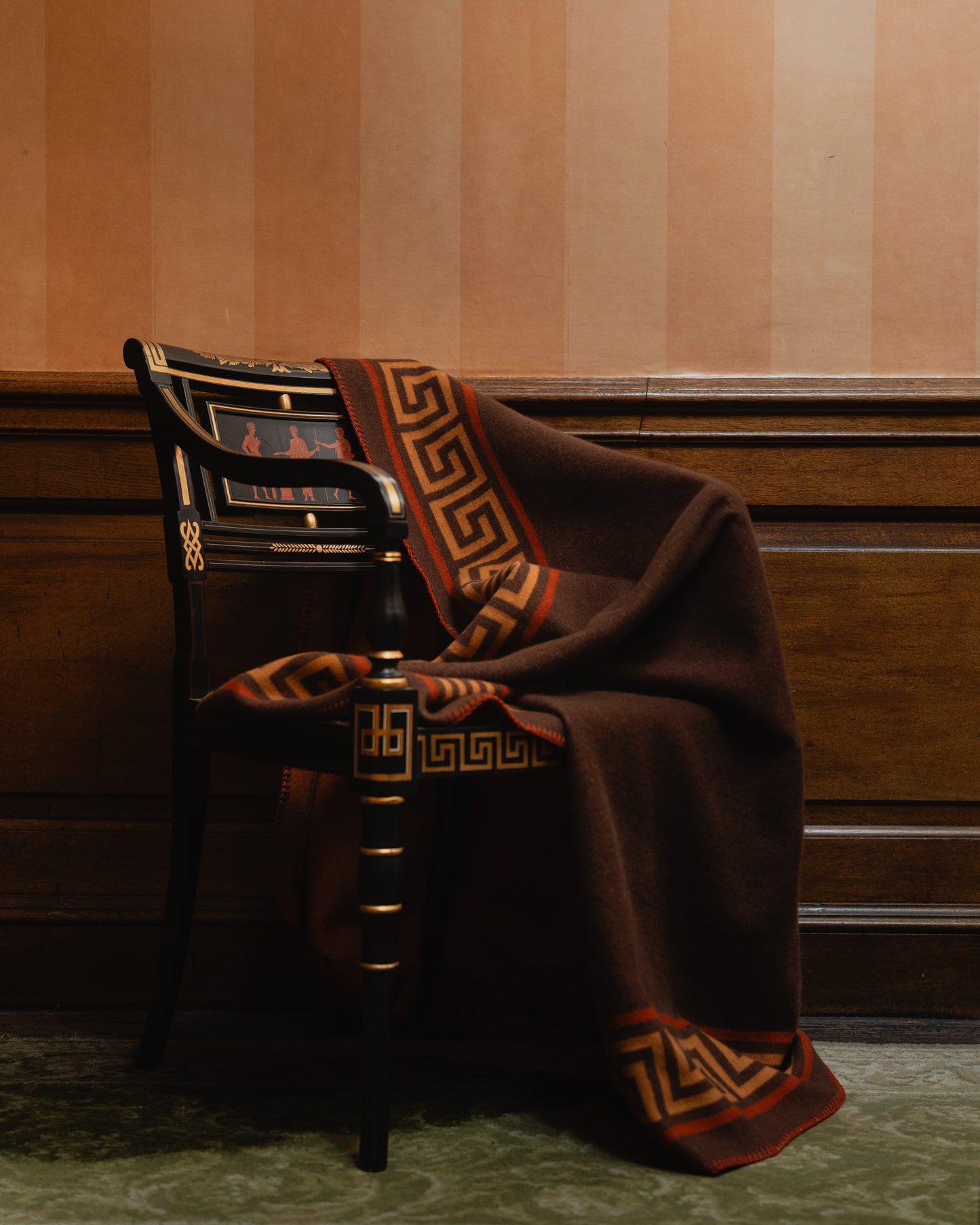 These buttery-soft cashmere-blend throws are intricately woven and finished with a hand-sewn hem, at Sharland's heritage workshop in Italy. We are meticulous about sourcing the finest Mongolian cashmere and Australian extrafine Merino wool, to create the most luxurious, decadent blanket for your bed or living room. Featuring warm, rustic colours from burgundy and mustard to olive green and chocolate brown, Louise's four blanket designs are inspired by Classical Grecian motifs.