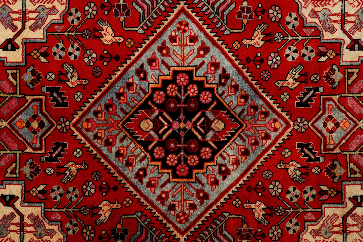 The city of Hamadan and its surrounding villages are very productive areas for carpet weaving. Each village produces unique carpets with colorful, charming, and primitive motifs. A wide variety of floral or geometric patterns on red, blue, or beige backgrounds, unique to each village, characterize these inspiring carpets. Nahavand is one of these Iranian villages.