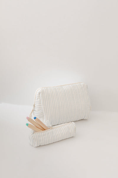 Made from the signature GOTS & OEKO-TEX® certified, 100% organic cotton Measures 25cm by 18cm, 12cm width (Fits 10 diapers)  100% cotton filling and crepe textured cotton lining