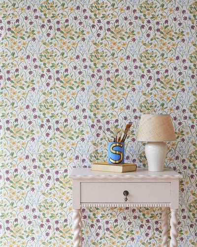 Bring the beauty of an Oxfordshire meadow into your home with ‘Oxford Meadow’ wallpaper. This organic floral pattern celebrates the delicate beauty of fritillary flowers, dusted with a miniature chequered print all of their own.