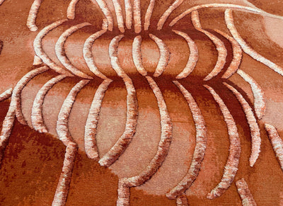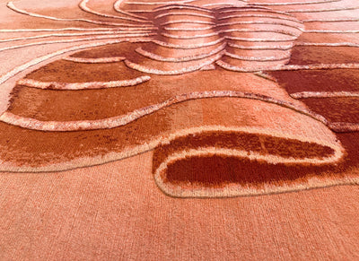 This wonderful carpet is the outcome of the collaboration of Soutzoglou Carpets with the German artist Pia Krajewski. Pia’s unique aesthetic combined with the expertise and craftmanship of Soutzoglou Carpets have managed to transform Pia’s painting into a carpet which stands out for the forty different hues of terracotta and three different pile heights!