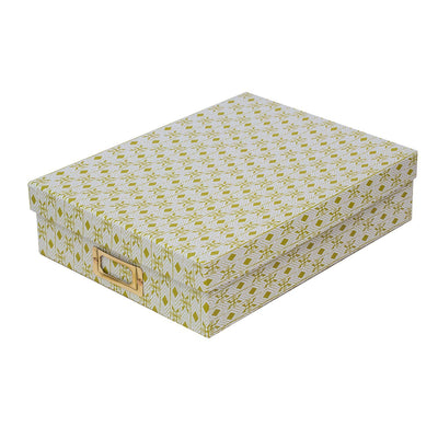 The Lidded Portfolio Box has a brass card frame at the front and fits up to A4 papers and objects.
