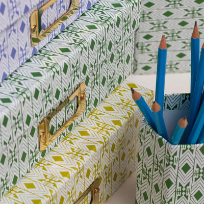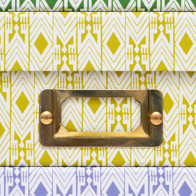 TIJAN is a celebration of delicate geometry, drawing inspiration from the bold architectural latticework found across West Africa. Its decorative diamond-shaped lozenges create a striking grid-like pattern, offering a refined counterpoint to our floral collections Ronko Hibiscus and Najjar or the more illustrative Banana Island. Geometrics add a touch of modernity to any room scheme, making TIJAN a versatile choice for contemporary interiors.