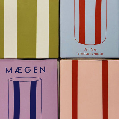 Introducing the Atina Glassware MÆGEN Tableware Collection – a vibrant set of striped, colourful glasses designed for the bold and playful. Perfect for the maximalist who loves making a statement, these lively pieces bring a pop of colour to any table setting, creating a fun and dynamic atmosphere for any occasion.