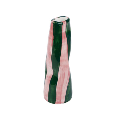 GREEN ON PINK STRIPES VASE