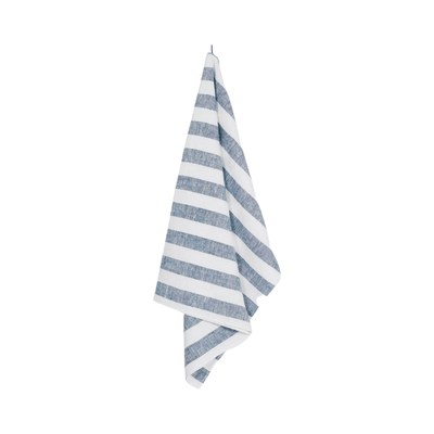 Blue + White Striped Linen Bath Towel
