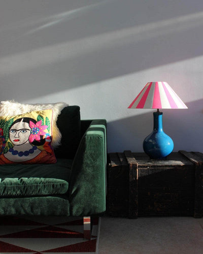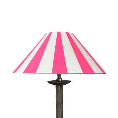 Crafted by hand in the UK using cream cotton, each lampshade is a unique, artisan piece. The hand-painting process creates beautiful, one-of-a-kind variations in the neon pink stripes, adding character and charm to every lampshade.