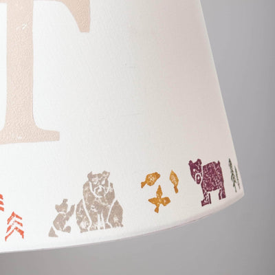 Introducing Studio Zef's customisable Bear Lampshade. This very sweet kids lampshade is hand printed with an array of things found in the forest; mother and baby bears, snoozing bears, wandering bears, fir trees, and more. Personalised with your chosen letter it will be a cherished item through a child's early years and growing up - a winner for parent and child. This children's lampshade is sure to add bags of love and character to a child's bedroom or playroom!