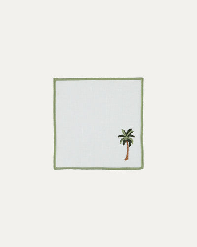 The White Palm Tree Wavy Napkin is a sure hit for your summer tables. With its wavy shape and elegant palm tree embroidery, this linen and cotton napkin is ideal for poolside parties or al fresco dinners. Combine it with other summer decorative elements to create a vibrant and welcoming tablescape.