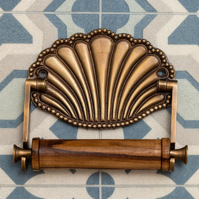Beauty meets functionality with our Shell Brass Loo Roll Holder. An easy way to jazz up a little downstairs cloakroom or add something unique to your bathroom. Designed by us in the UK and ethically handcrafted by our independent artisans in India using pure brass. Available in an antique brass or lacquered brass finish.