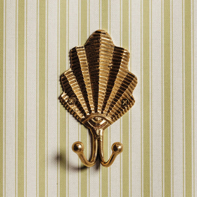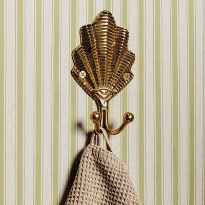 Part of the shell brass bathroom collection, this double hook combines beauty and functionality.