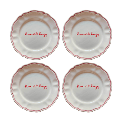 Sveva's Home Ceramic "I am still Hungry" Scalloped Plate Set Of 4