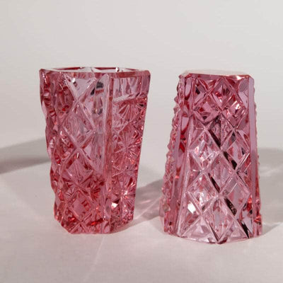 Add a touch of charm to your barware collection with this stunning set of four vintage Bohemian pink shot glasses.