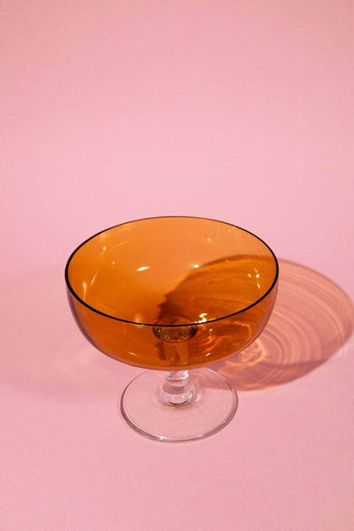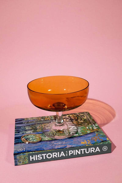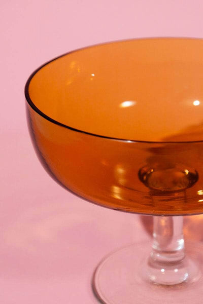 Bring vintage flair to your home with this stunning amber glass bowl on a clear stem. Whether used as a fruit bowl or styled with creative decor, this versatile piece adds warmth and character to any space.