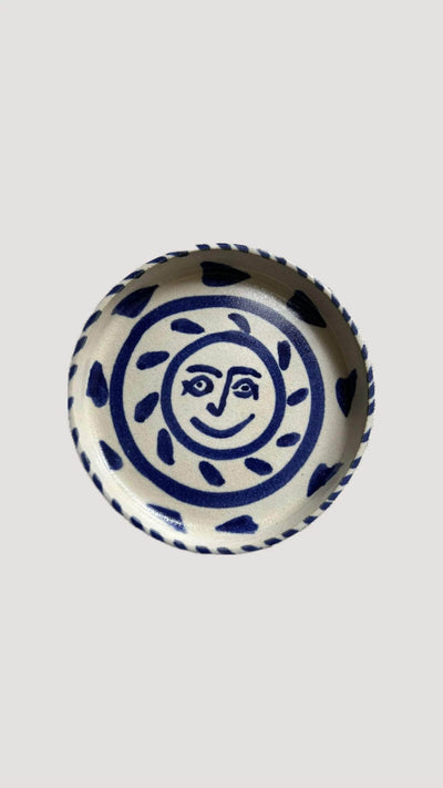 The Sciacca plate is hand thrown from Staffordshire white stoneware, finished with a cobalt blue design.  A piece of art for your walls, each piece is unique and designed to be held onto for a lifetime. Use for serving or perfect for adding an artisan element to your table scape. Inspired by the rustic town of Sciacca in Sicily, famous for its pottery.