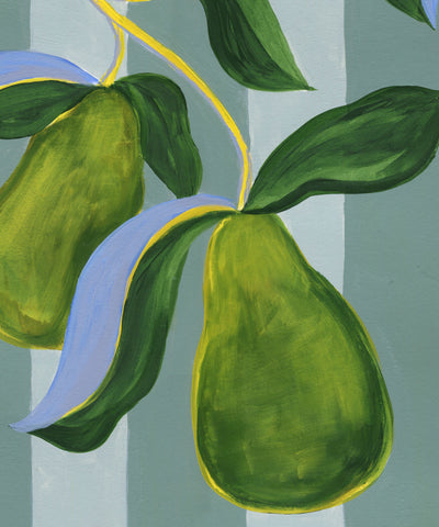 Les Poires Giclée Print. Part of the 'FRUIT SALAD' collection. Get Fruity with these Striped fruit Prints. Bold, playful and Colourful.
