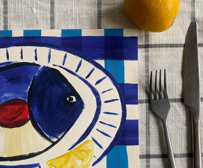 With industry experience as a Print Designer in fashion, homeware and stationery spanning over 25 years, Emily is a firm believer in mixing print and pattern with the old and new, she designs to create something fresh and timeless for your home. This print is inspired by a trip to a Spanish Island where many Tapas were eaten. This is a print of the original acrylic painting.