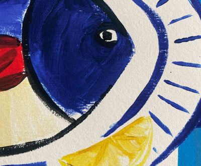 This print is inspired by a trip to a Spanish Island where many Tapas were eaten. This is a print of the original acrylic painting.