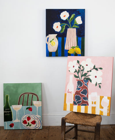 With industry experience as a Print Designer in fashion, homeware and stationery spanning over 25 years, Emily is a firm believer in mixing print and pattern with the old and new, she designs to create something fresh and timeless for your home. This is an Original Art piece, part of the Garden Party Collection.