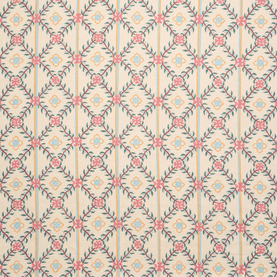 Inspired by a vintage Swedish floral rug, this fabric depicts a beautiful trellis mingled with traditional chevron motifs.  This is the smaller scale, lighter colourway.