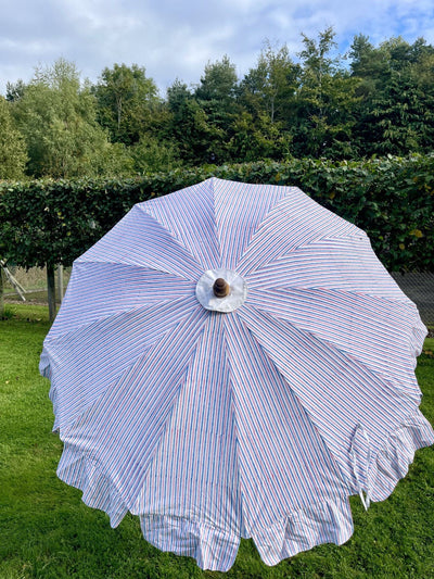 A fun and pretty parasol in a lovely pink and blue candy stripe.