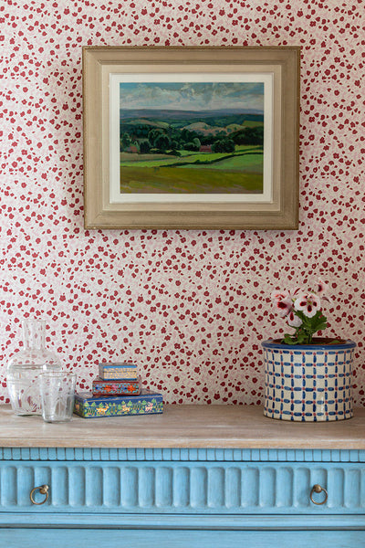 A small and delicate pattern of pretty flowers, stems and leaves set close together to give the impression of a carpet of blossom.  This is the Two Pinks colourway with a soft pale pink and a darker more sophisticated pink, a classic combination.