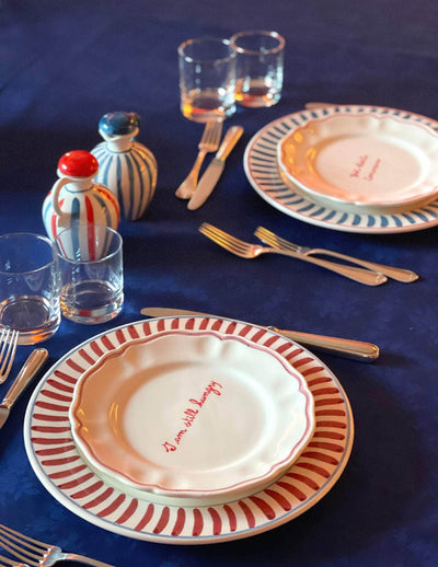 Hand painted by local artisans in Italy, these beautiful and personalised 100% ceramic dining plates, work perfectly with Sveva Home's new “I Dine in Colour” Tableware line.