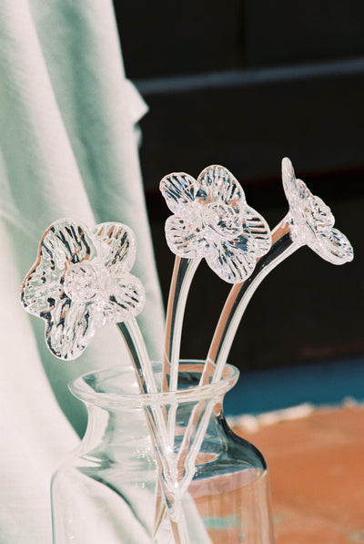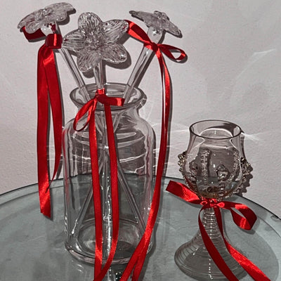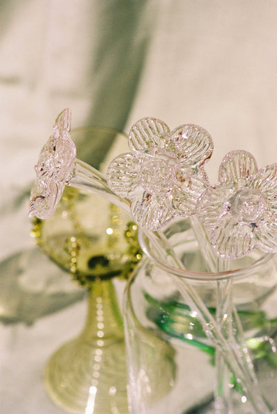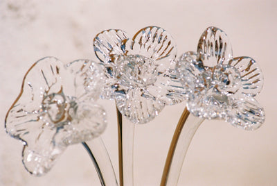 The crystal flowers are mouthblown free-hand without the use of traditional molds. The glass flowers serve as timeless celebrations of life's milestones, challenging the disposability of conventional flowers and infusing homes with enduring beauty. Each piece is a testament to the intersection of artistry and sentiment, transforming fleeting moments into permanent fixtures.
