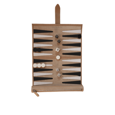Handmade in Los Angeles, this luxe tan travel backgammon set is a perfect addition to any globetrotter’s hand luggage. The set features a leather base with a brown, white and black suede playing field. Ideal for the traveller who can’t resist a game on the go.