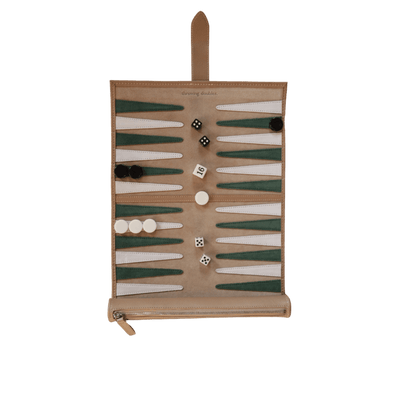 Handmade in Los Angeles, this luxe caramel travel backgammon set is a perfect addition to any globetrotter’s hand luggage. The set features a leather base with a green, white and brown suede playing field. Ideal for the traveller who can’t resist a game on the go.