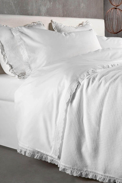 The Bordal bedspread in 100% cotton pique is a romantically inspired piece that perfectly complements the Bordal sheet sets, adding a special touch to your bed. Made with quality materials, this bedspread provides comfort and elegance, transforming your bedroom into a welcoming and charming space. Let yourself be enveloped by the beauty and softness of the Bordal bedspread and enjoy peaceful, stylish nights of rest.