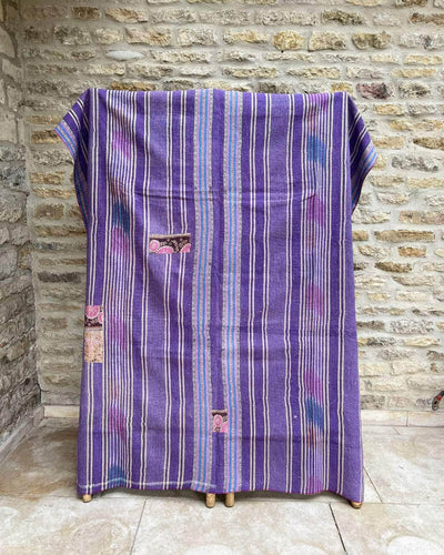 This one of a kind multicoloured kantha quilt, has been hand-picked by Chloe from India, ensuring the highest quality and authenticity. This delicious midweight vintage kantha quilt is crafted from numerous layers of vintage cotton saris all meticulously hand-sewn together.