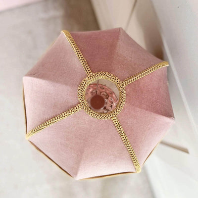 Hand-sewn in the prettiest pink velvet with a silk-effect texture, this lovely shade is finished with gold braiding and a two-tone fringe made up of gold and dusty-pink tassels. You can count on it to elevate your space with a touch of understated glamour.